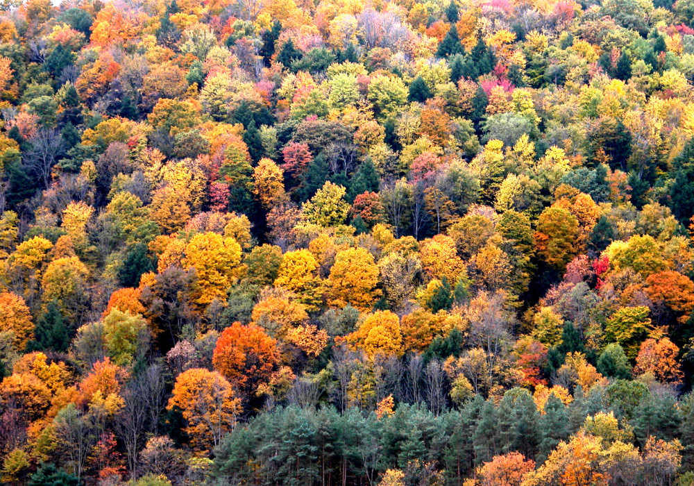 Ithaca, New York, delights with the combination of waterfalls and colorful trees in the picturesque Finger Lakes region. Fall brings out shades of scarlet and amber that contrast beautifully with nature’s cascading water.